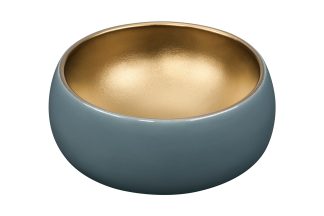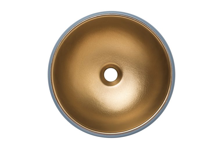 Zewnętrzna strona umywalki wykonana jest w unikalnej szarości, która w połączeniu z matowym złotem po wewnętrznej stronie tworzy piękną kompozycję kolorów. Taki wygląd umywalki świetnie pasuje do złotej lub czarnej armatury, co pozwala stworzyć ponadczasową łazienkę.