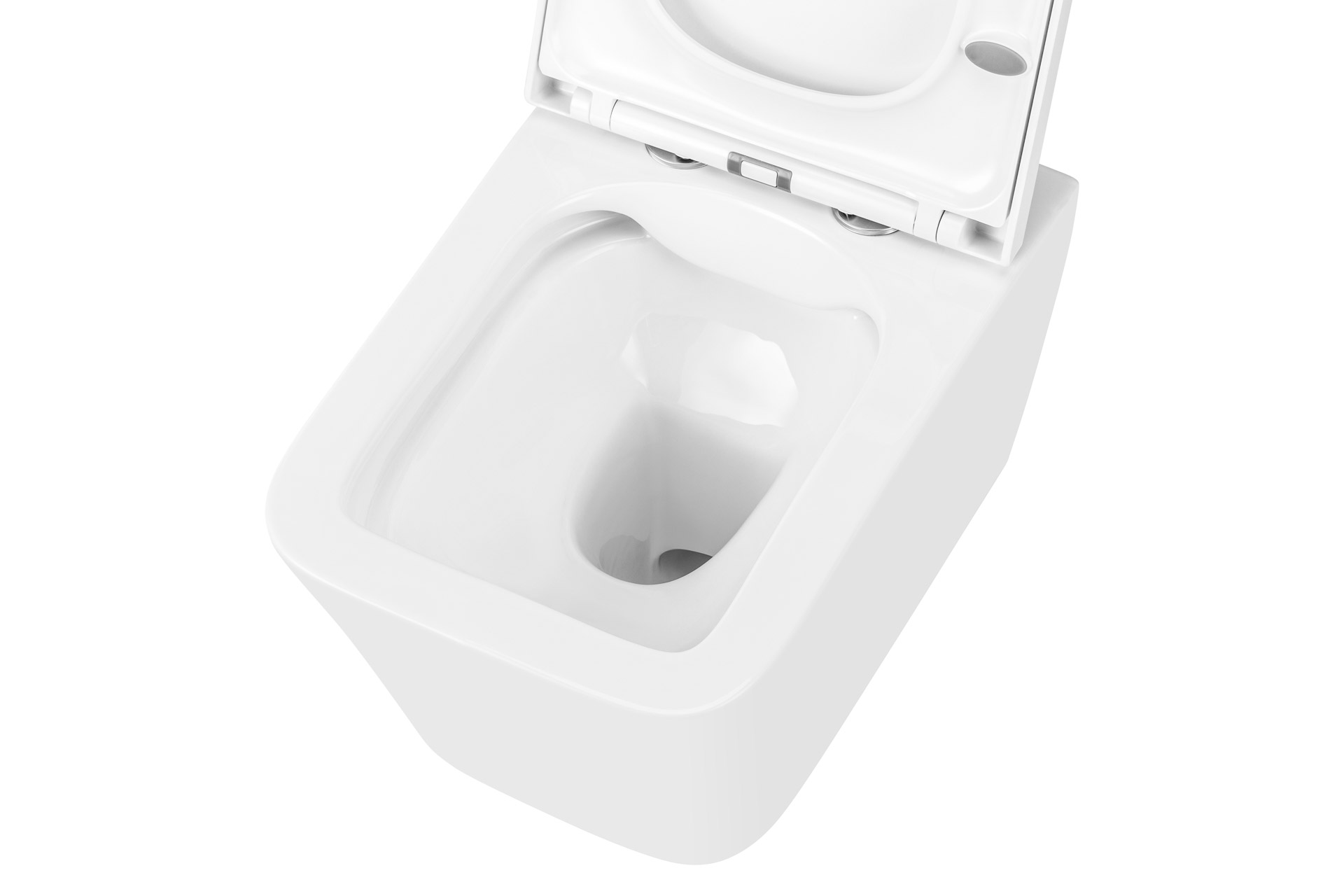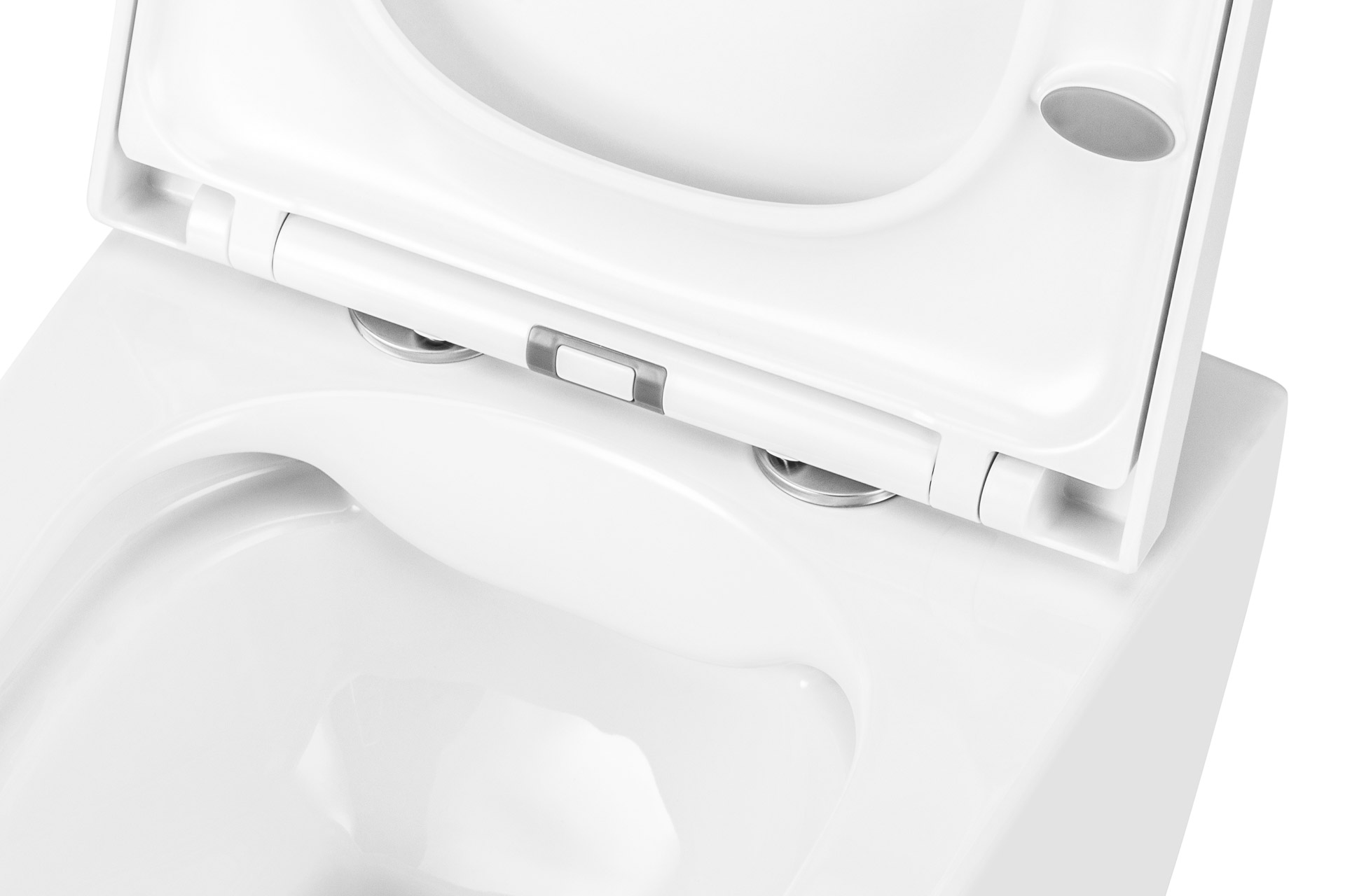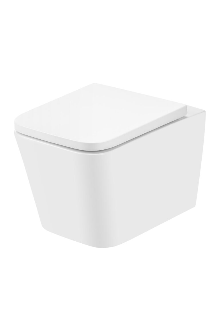Bezrantowa miska wisząca WC wraz z wolno opadającą deską WC.