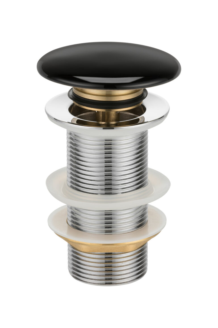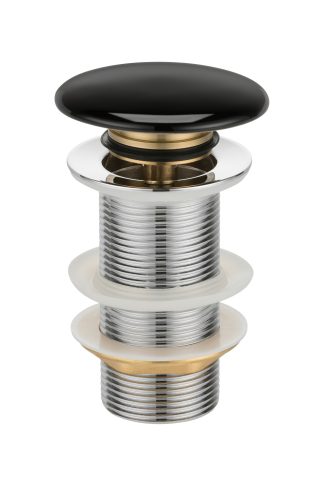Korek ceramiczny bez przelewu click-clack F008-18 wykonany ze stali oraz mosiądzu. Górna część korka wykonana z ceramiki w kolorze błyszczącej czerni.