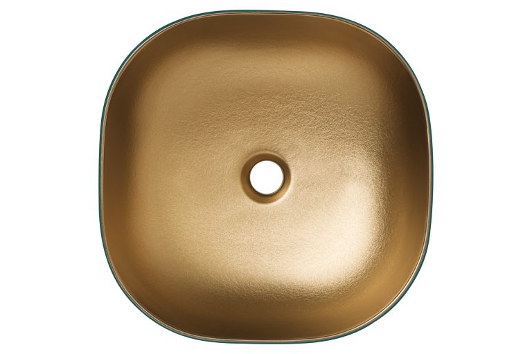 Dzięki połączeniu matowego złota z turkusowym kolorem, umywalka ta jest idealna do nowoczesnych, designerskich łazienek, w których panuje oryginalny styl. To doskonały wybór dla osób, które chcą wyróżnić swoją łazienkę spośród innych, dzięki pięknej, unikalnej umywalce.