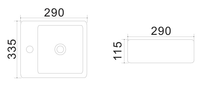 Umywalka ceramiczna podwieszana/nablatowa prostokątna.