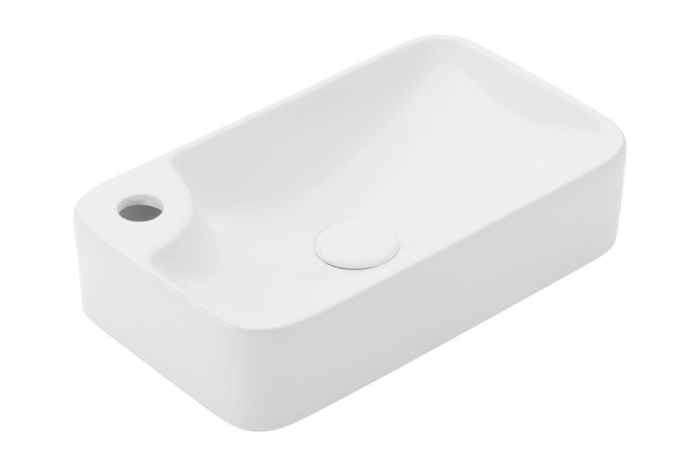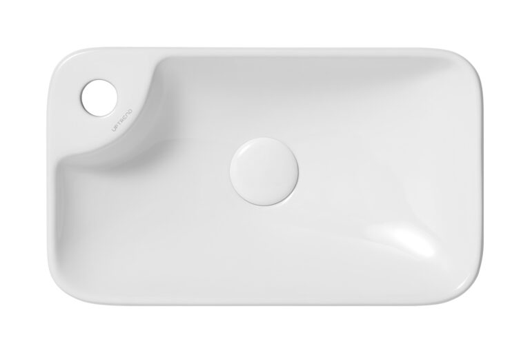Umywalka ceramiczna Midea TR4121 o szerokości 41cm i głębokości 26cm wyróżnia się nie tylko swoim łagodnym kształtem, ale także funkcjonalnością i praktycznością. Dzięki swoim kompaktowym wymiarom doskonale pasuje do małych szafek łazienkowych, co sprawia, że jest idealna dla osób, które poszukują rozwiązań pozwalających zaoszczędzić przestrzeń. Umywalka posiada dedykowane miejsce na montaż armatury, co umożliwia wybór odpowiedniej kolorystyki dla Twojej łazienki.