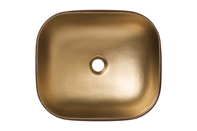 Jednym z największych atutów umywalki Celia TR-T323 jest jej piękny kolor. Wewnątrz umywalki znajduje się matowe złoto, a na zewnątrz niepowtarzalny kolor burgundowy, co tworzy harmonijną kompozycję kolorów. Taki design umywalki pozwala na swobodne komponowanie z armaturą w kolorze złota lub czarnej, dzięki czemu można stworzyć ponadczasową i stylową łazienkę.