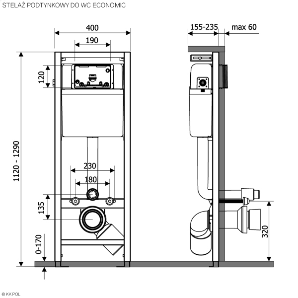 Stelaż KK POL został wykonany z wysokiej jakości stali. Jest to uniwersalny stelaż idealnie pasujący do nowoczesnych łazienek. Do stelaża można zamontować zarówno miskę WC o rozstawie montażowym 18 jak i 23cm. Co bardzo pomocne, stelaż można również dostosować zarówno jeżeli chodzi o wysokość jak i głębokość montażu.