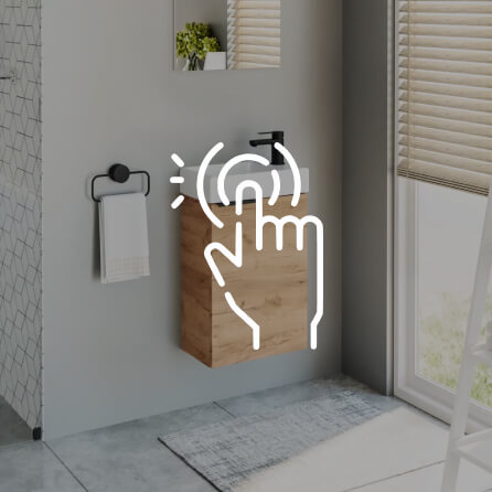 Jest to specjalna technologia, która ułatwia otwieranie naszych szafek łazienkowych. Dzięki zastosowanej technologii, drzwiczki w których nie zamontowano uchwytów otwierają się po delikatnym naciśnięciu frontu szafki.