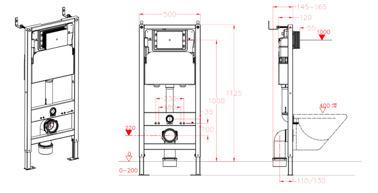 Stelaż Yosemite został wykonany z wysokiej jakości stali. Jest to uniwersalny stelaż idealnie pasujący do nowoczesnych łazienek. Do stelaża można zamontować zarówno miskę WC o rozstawie montażowym 18 jak i 23cm. Co bardzo pomocne, stelaż można również dostosować zarówno jeżeli chodzi o wysokość jak i głębokość montażu.