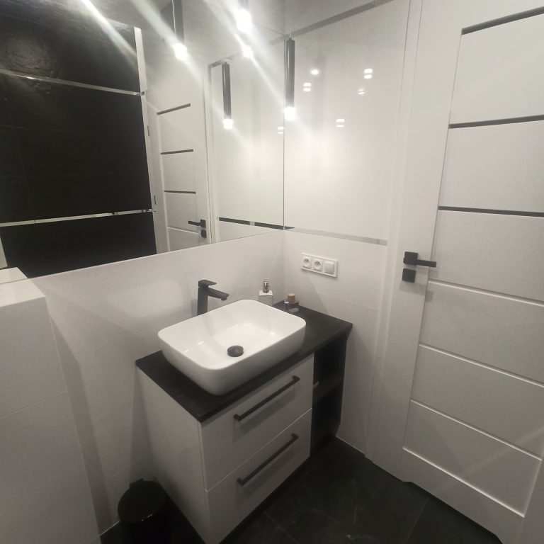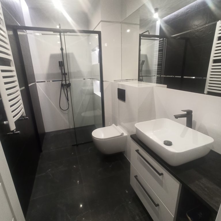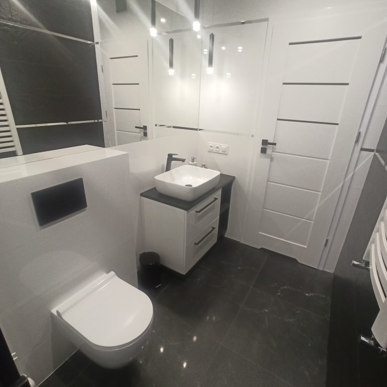 Prywatna łazienka w domu jednorodzinnym w Lublinie. Klient poszukiwał sprawdzonej miski WC oraz umywalki o eleganckim wyglądzie. Miska WC Caneo TR2196D oraz umywalka Hera TR41290 świetnie pełniły oczekiwania inwestora.